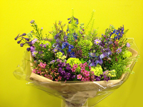 Veldboeket met diverse bloemen en takken, wild gestoken, De meeste bloemen zijn seizoensgebonden. Indien niet leverbaar wordt er een vervangende bloem voor gebruikt. Uiteraard met de grootste zorg samengesteld!